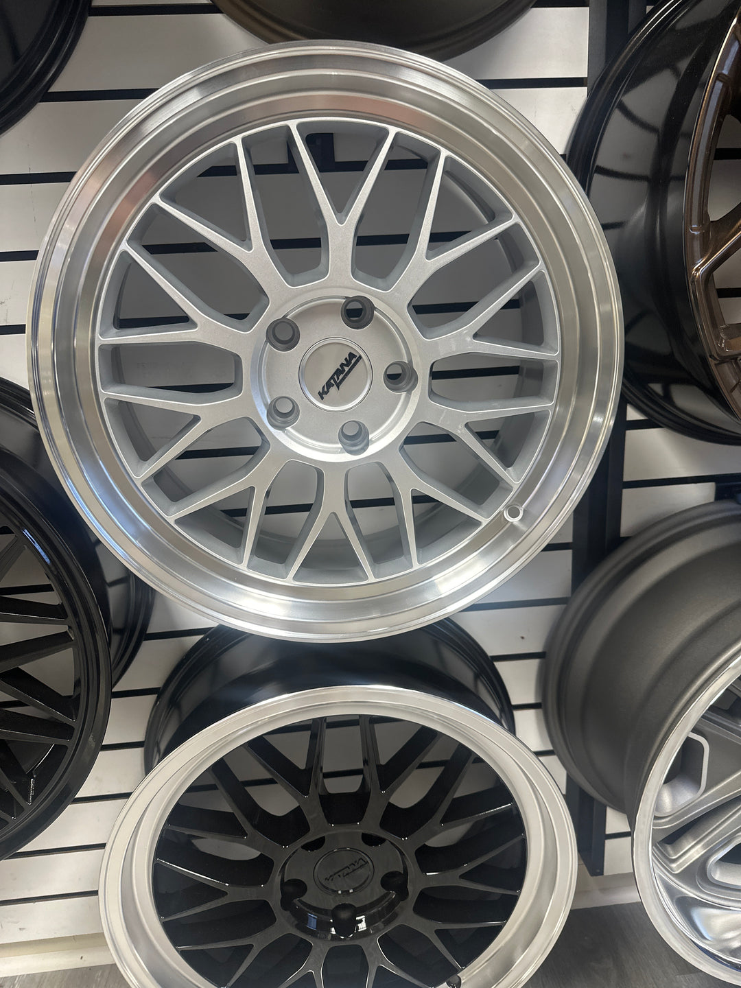 KATANA 18" KR06 GLOSSY SILVER MACHINE LIP 5x114 FOR HONDA ACCORD CIVIC PILOT FORD MUSTANG RANGER FUSION ESCAPE EXPLORER EDGE KIA STINGER K4 K5 K7 K8 K3 SOUL TOYOTA CAMRY RAV4